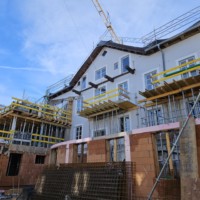 Im Zuge der Sanierung wurde der Anbau bis auf die Kellerdecke zurückgebaut. Der Neubau wurde in Mauerwerksbauweise mit Stahlbetondecken und -stützen errichtet. Die Geschosse verspringen jeweils, wodurch neue Dachterrassen entstehen. Die Dachkonstruktion wurde als Stahlbetonplatte mit Flachdach ausgeführt.